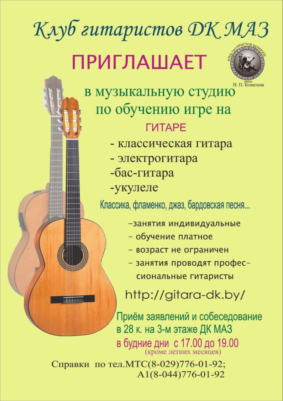 Обучение игре на гитаре в студии Клуба Гитаристов Беларуси. Наши преподаватели найдут подход к каждому. Всю информацию можно получить по телефону. +375(29)776-01-92 +375..